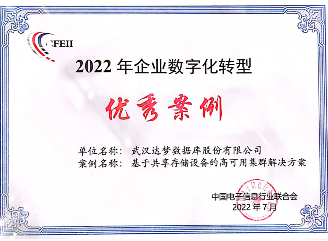 7月8号下午,大会主题论坛《企业数字化转型引领制造业高质量发展论坛》拉开帷幕。为加强企业数字化转型引领制造业高质量发展,推广信息系统建设和服务优秀成果案例和典型经验,论坛上由中国电子信息行业联合会发布了企业数字化转型解决方案及应用案例集。达梦公司基于共享存储设备的高可用集群解决方案、达梦柔性替代迁移解决方案、基于自主研发图数据库的大数据关系分析应用解决方案三款解决方案,均被评选为“2022企业数字化转型优秀案例”。