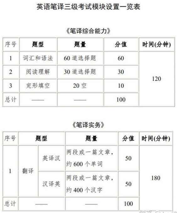 一级笔译考试设《笔译实务》1个科目,二、三级笔译考试设《笔译综合能力》和《笔译实务》2个科目。