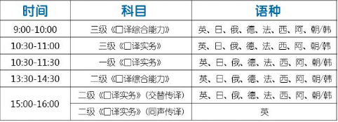 翻译专业资格(水平)考试原则上每年上半年、下半年各举行一次。英语一级口译考试、笔译考试只在上半年举行,英语二级口译(同声传译)只在下半年举行考试,英语二级口译(交替传译)、英语二级笔译、英语三级口译、英语三级笔译上下半年各举行一次考试;法语、日语、阿拉伯语、葡萄牙语的一、二、三级口译考试、笔译考试均在上半年举行;俄语、德语、西班牙语、朝鲜语/韩国语的一、二、三级口译考试、笔译考试均在下半年举行。