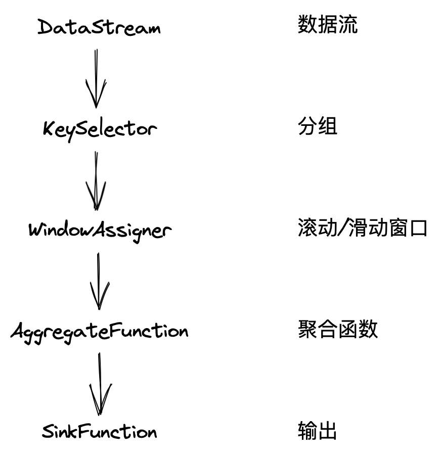 如果你熟悉 Flink DataStream API,那你肯定会发现 Flink 的设计天然满足风控实时特征计算场景,我们只需要简单的几步即可统计指标,如下图所示: