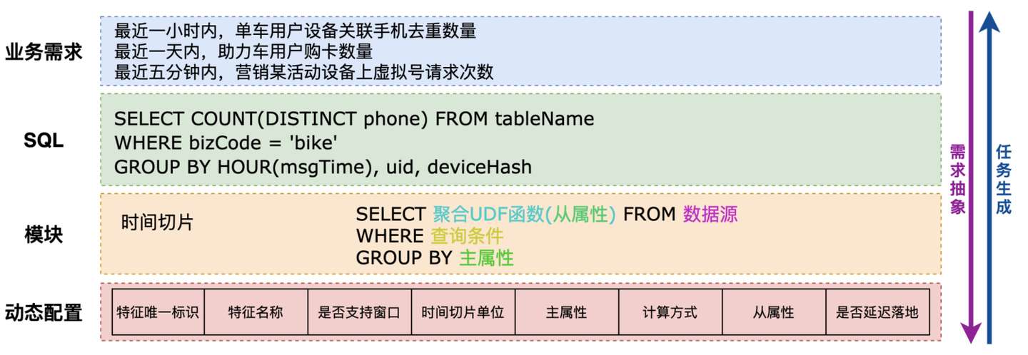 平台话建设,最重要的是“整个流程的抽象”,平台话的目标应该是能用、易用、好用。基于如上思想,我们尝提取实时特征研发痛点:模板化 + 配置化,即平台提供一个实时特征的创建模板,用户基于该模板,可以通过简单的配置即可生成自己需要的实时特征。