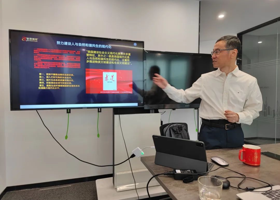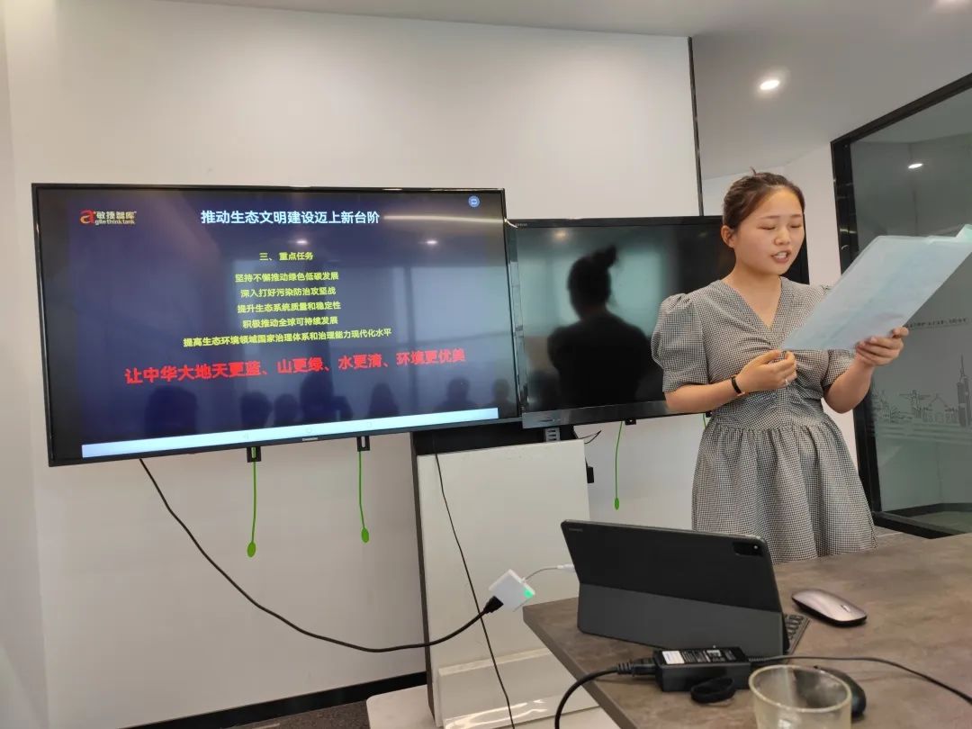 接下来,党支部入党积极分子陆田野通过深入学习《十九届政治局第二十九次集体学习讲话》相关资料,就“大力推进新时代生态文明建设”这一党中央重要战略布局作主题分享。
