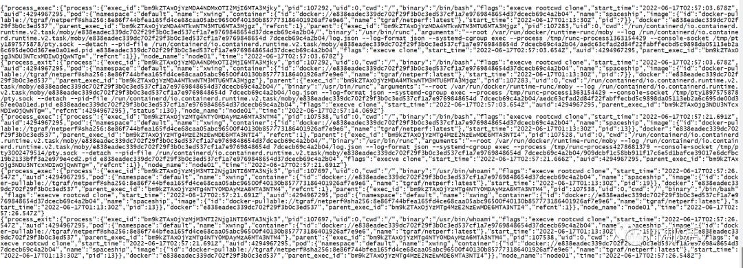 通过查看pod tetragon下的export-stdout容器日志,检测到可观察性事件: