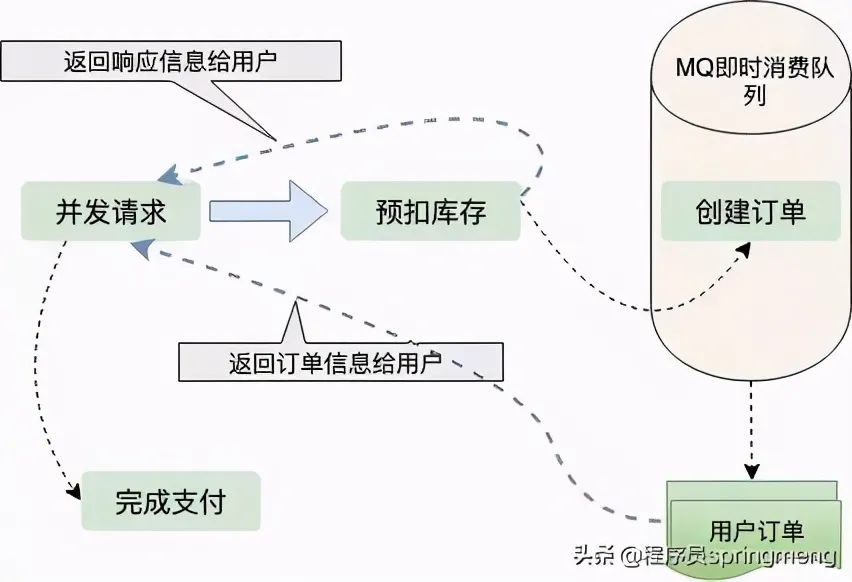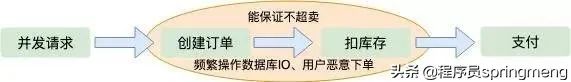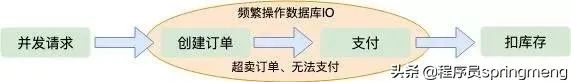 从上边两种方案的考虑,我们可以得出结论:只要创建订单,就要频繁操作数据库IO。那么有没有一种不需要直接操作数据库IO的方案呢,这就是预扣库存。先扣除了库存,保证不超卖,然后异步生成用户订单,这样响应给用户的速度就会快很多;那么怎么保证不少卖呢?