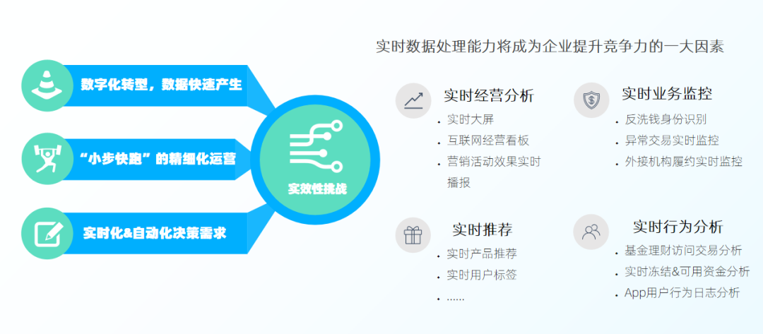 面对数字化转型下的数据快速产生、“小步快跑”的精细化运营及实时化和自动化的决策需求,如何提高实时数据处理能力将成为企业提升竞争力的一大因素。