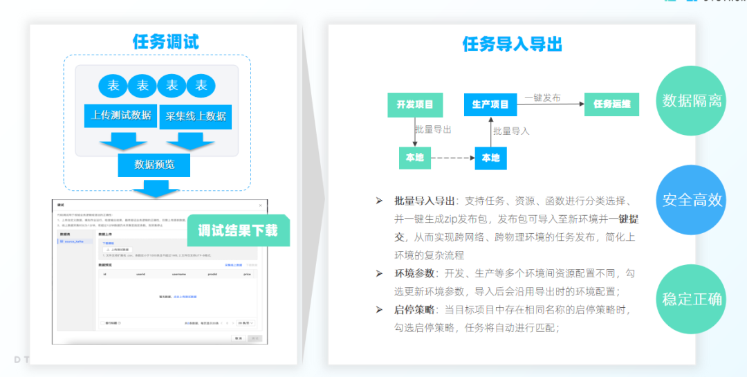 开发完毕之后就是任务的发布上线,发布上线包括任务调试和任务导入导出两个方面。