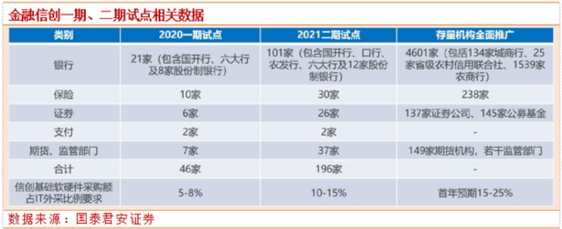 从2020年的47家金融机构信创试点,到2021年的198家,再到2022年的扩容至全行业5000余家试点机构,很明显,金融行业信创已经正式驶入了由国家政策保驾护航的发展快车道,进入高速增长期,领域需求不断释放,到2025年的未来4年将是金融信创发展的关键节点。