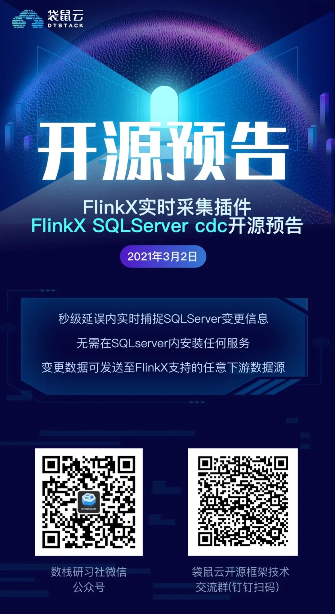 应广大用户的强烈需求,FlinkX技术团队将于3月2日在Github开源社区上线我们的实时采集插件——FlinkX SQLServer cdc,届时也会为大家推送设计文档和使用文档。
