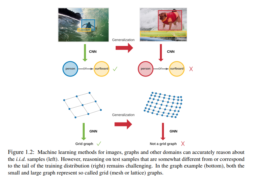 本文探讨了图分类、场景图合成视觉推理和神经网络推理等图推理任务中的泛化问题。使用从数据而不是工程特征中学习的模型来处理这些任务是事实上的标准。然而,这种模型的一个基本挑战,尤其是神经网络,是糟糕的泛化。出现这一问题的原因可能是模型依赖于伪相关(“捷径”),而这些伪相关在训练数据中常常大量存在(Shen et al., 2021; Zhou et al., 2021; Schölkopf et al., 2021)。当在测试数据上评估NN时,这个问题尤其值得注意,这些测试数据来自于与训练数据略有不同的分布。虽然人类经常对各种分布转移表现出很强的泛化能力,但机器学习模型在这方面要弱得多。这篇论文对理解和提高泛化做出了一些贡献。