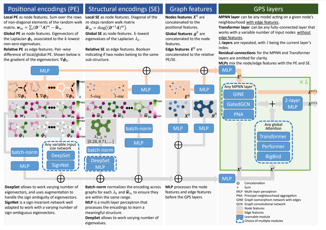 🛠 GraphGPS 库允许将任何 MPNN 与任何 Transformer 以及任何位置/结构编码结合起来。