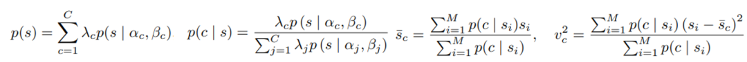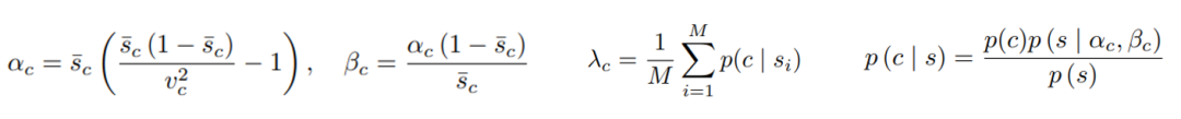 上述分析表明相似度不能做为衡量图对比学习中负样本难易程度的指标,因此作者想在衡量图对比学习中负样本难易程度时考虑负样本为真负样本的概率。作者利用混合分布来估计该概率,但是常用的高斯混合只能拟合对称的分布,因此,作者利用了更加灵活的Beta混合分布,然后利用EM算法估计负样本为真的概率。EM算法估计Beta混合分布的参数的步骤如下: