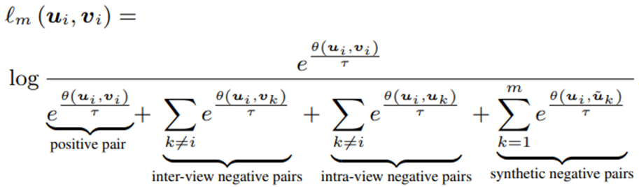 一方面,作者用上面提出的新度量选择负样本进行mixup,这能让选到的负样本为真的概率更高也能使选到的负样本更可能是难负样本。另一方面,在进行mixup时,用来mix的系数也是由估计出的负样本为真的概率决定的。公式如下: