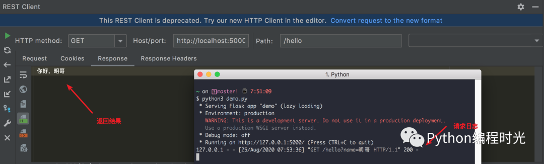 为了演示,我先使用 Flask 写一个 HTTP 接口