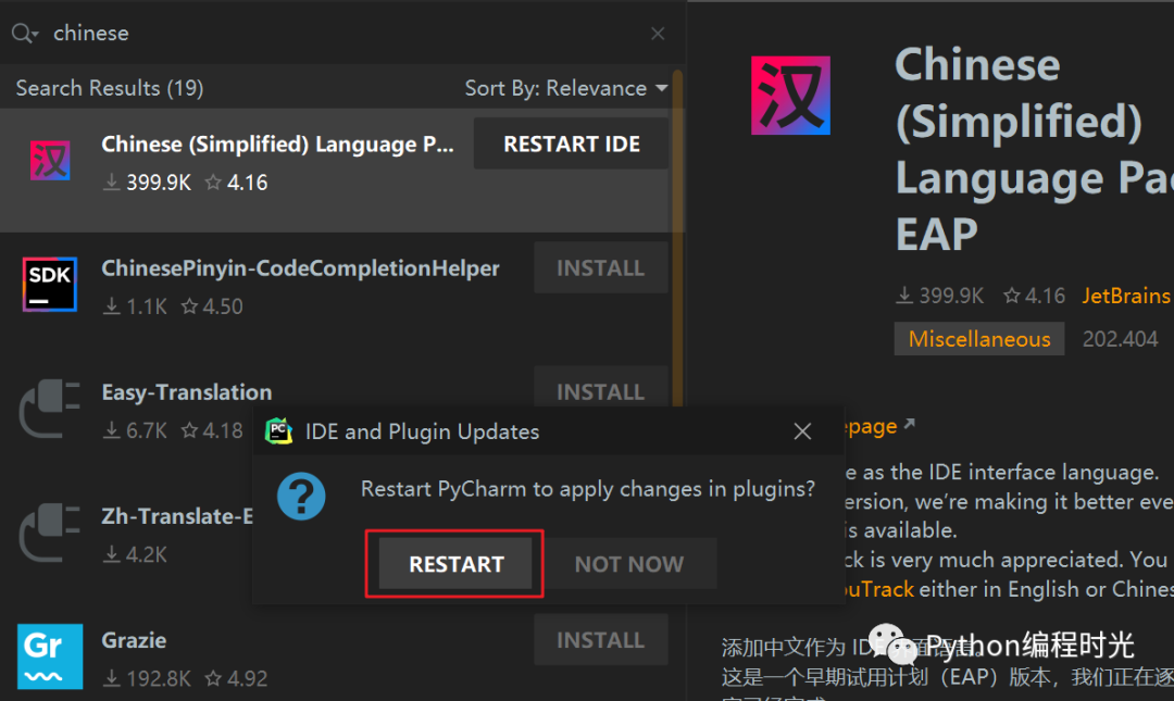 安装方法如下,安装完后需要重启 Pycharm 生效。