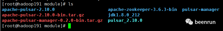 [root@hadoop191 software]# tar -zxvf apache-pulsar-2.10.0-bin.tar.gz -C ../module/