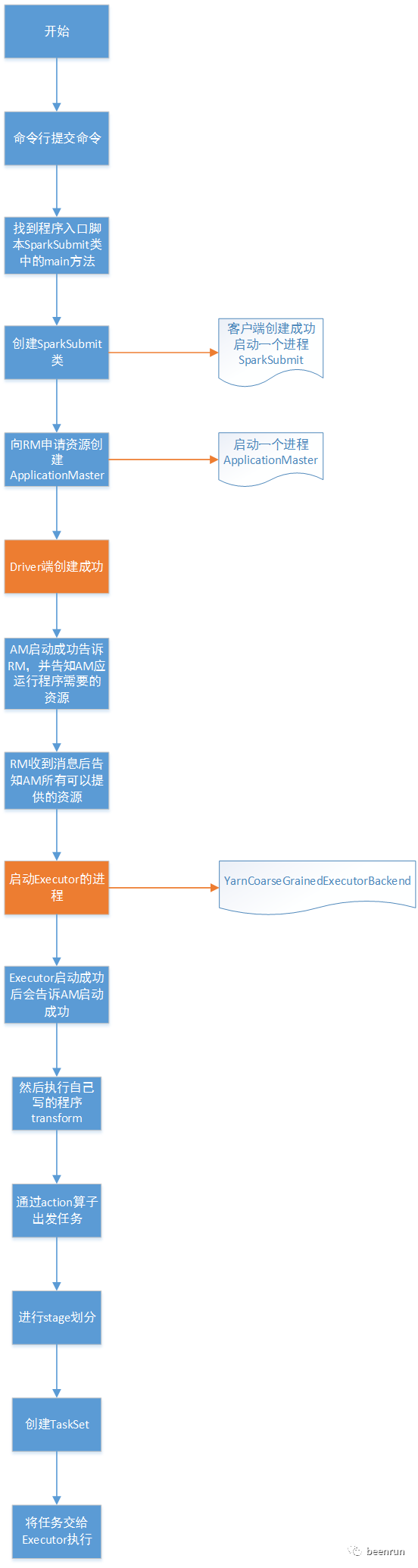 创建进程YarnCoarseGrainedExecutorBackend,启动ExecutorBackend完成