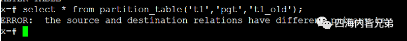 这个PGT的表结构,字段类型,约束条件要和T1一样(我是这样成功的,之前多次失败,不是这里报错,就是那里报错)
