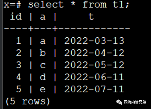 Create table t1 ( id int not null,a varchar(10),t date);创建一个普通表。