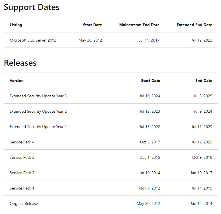 SQL Server 2012 于 2022 年 7 月 12 日终止支持,Windows Server 2012/2012 R2 将于 2023 年 10 月 10 日终止支持。在此日期之后,这些产品将不再提供安全更新、bug修复或技术支持。产品功能不会立即停止,但考虑到安全风险,不建议继续使用。