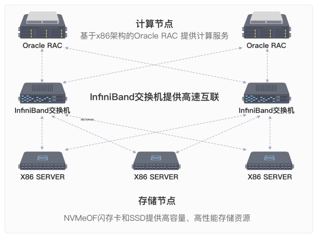 世异则事异,事异则备变。面对激增的海量投资者和交易频次,国泰君安开始采用 zData 数据库一体机进行架构升级。升级后的架构整体采用x86服务器、NVMeoF闪存卡、InfiniBand交换机互连3个存储节点+2个计算节点,构建了以 zData 为核心的具备弹性扩展、高性能、高稳定性的新一代数据基础设施架构。值得一提的是,此次 zData 配置的NVMe硬盘,基于NVMe闪存卡在存储节点利用PCIe通道和CPU直连,使数据库具备了极高的性能和超低的延迟!