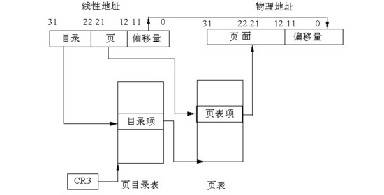 4. 操作系统及硬件将虚拟地址映射为物理地址时,将虚拟地址的31-22这10位用于从目录项中索引到1024个页表中的一个;将虚拟地址的12-21这10位用于从页表中索引到1024个页表项中的一个。从这个索引到的页表项中得到物理内存页的起始地址,然后将虚拟地址的0-11这12位用作4KB内存页中的偏移量。那么物理内存页起始地址加上偏移量就是进程所需要访问的物理内存的地址。