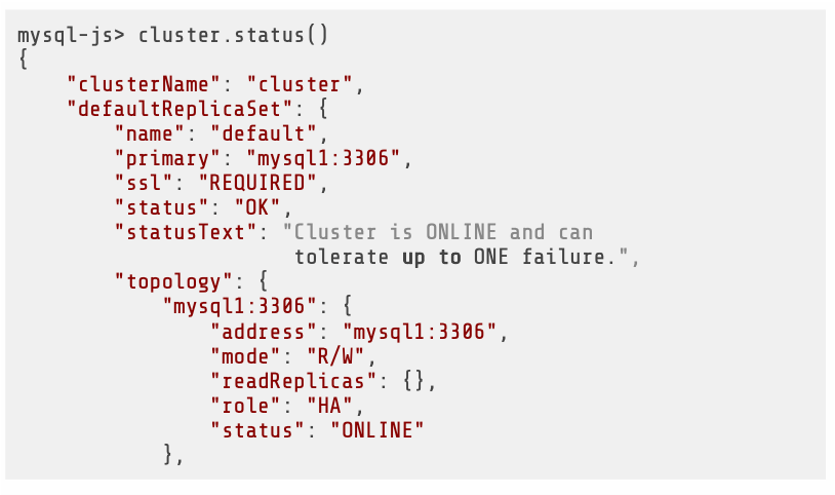 以往需要使用额外的监控工具在每台服务器上去检查拓扑状态,用户需要负责全部组件的所有配置,每一个设置都相当于定制化。使用InnoDB Replica Set可以通过MySQL Shell status()来查看拓扑状态,并且Shell会基于最佳实践配置服务器、路由和复制,以防止发生错误。