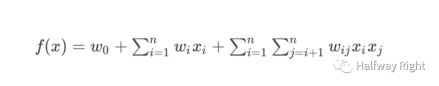 我们可以通过人工添加x_i 和x_j的交叉项来增加模型的非线性,那么这个模型的线性部分就会变成