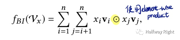 NFM: 相比于FM两个embedding vector做dot product,NFM提出的FM(Bi-Interaction Layer)是用的element-wise product(实现上其实相比于FM少了个sum pooling,其输出是K维的,而标准FM的输出是scalar),而后接入MLP用于捕获更高阶交叉特征。