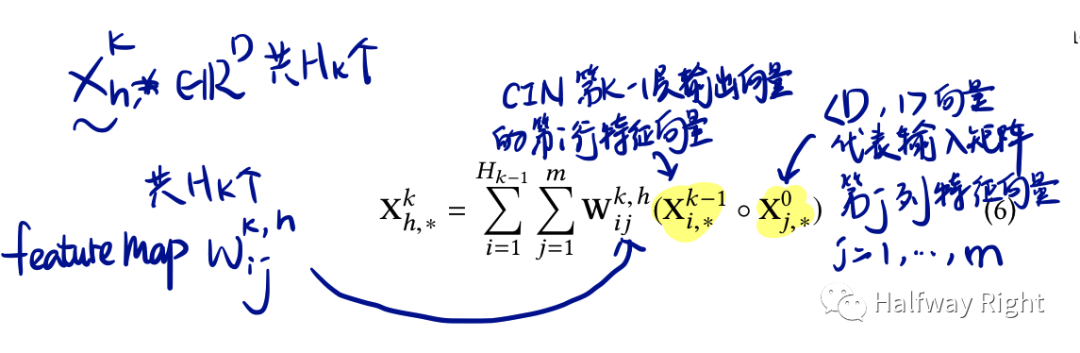 xDeepFM:虽然xDeepFM名字和DeepFM很像,但其主要对比的是Deep & Cross bit-wise fashion的特征交叉方式(个人理解MLP和Deep&Cross都是bit-wise的interaction,因为都需要把n个特征的embedding vector flatten到一个维度喂入神经网络,抹去了特征的概念),而xDeepFM强调采用vector-wise fahsion显式地进行高阶的特征交叉,其实是把输入embedding vector和中间层输出的embedding vector做外积,然后通过一维卷积去进行压缩编码,最后sum pooling以后concat进行输出。(其通过显式的外积保证了embedding vector的元素或者bit之间不会相互交叉,比如X_0的embedding vector为[D, 1]的第一个元素[1,1]不会和[2,1]个元素进行交叉,其只能和中间层各特征embedding vector的第一个元素交叉)。