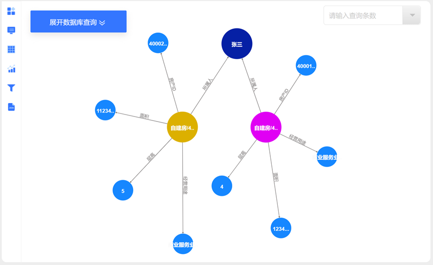 查询3:查找张三拥有的自建房信息并进行逐级探索。