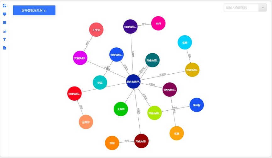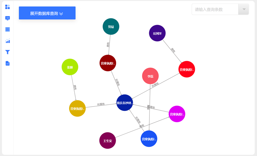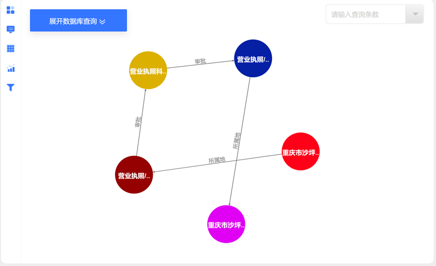 SPARQL查询语句:SELECT *WHERE {?营业执照 <所属地> <重庆市沙坪坝区土主镇永祥路83号> .?姓名 <拥有> ?营业执照 .}