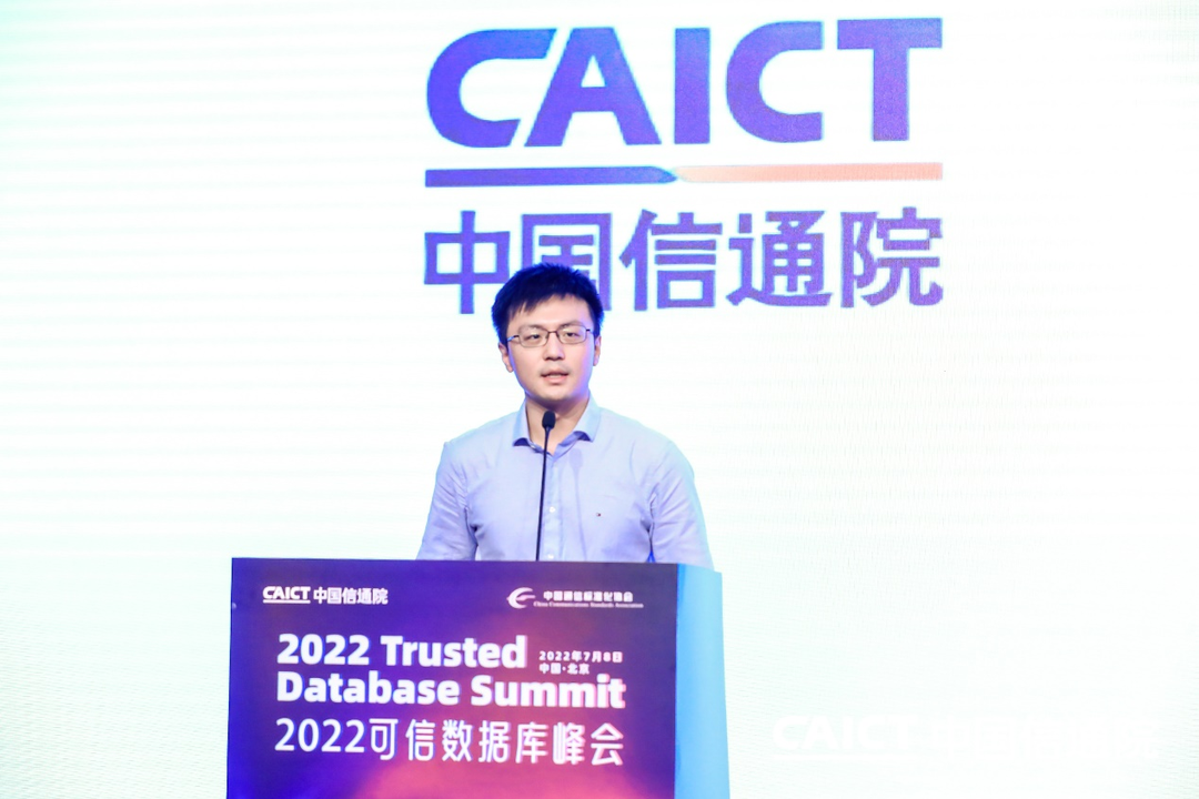 在峰会上午演讲环节,中国信通院云计算与大数据研究所大数据与区块链部副主任马鹏玮对第十四批中国信通院“可信数据库”评测结果进行了解读。
