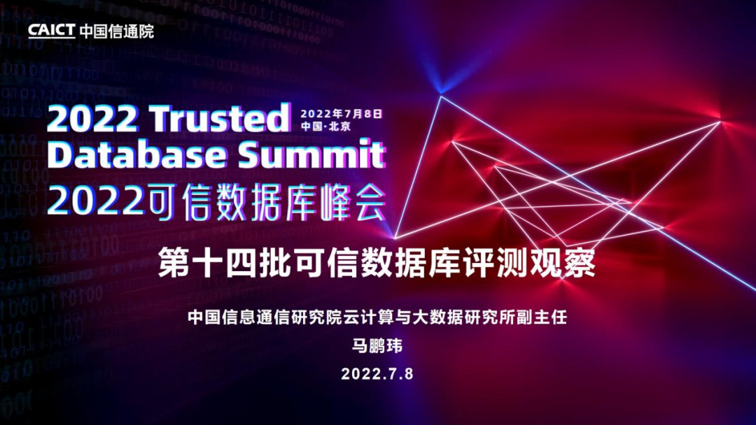 各位线下的领导嘉宾,各位线上的观众朋友大家好,很荣幸由我为大家介绍第14批“可信数据库”评测结果的情况,以及对于这批评测结果的观察。