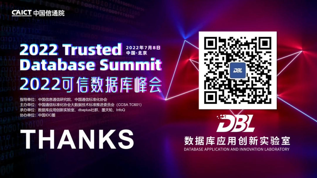 为深入贯彻党的十九大关于“推动互联网、大数据、人工智能和实体经济深度融合”总体部署,落实《国家标准化发展纲要》《“十四五”数字经济发展规划》《“十四五”国家信息化规划》《“十四五”大数据产业发展规划》《“十四五”软件和信息技术服务业发展规划》等政策要求,推动数据库产业健康有序发展,2022年7月8日,由中国信息通信研究院(以下简称“中国信通院”)、中国通信标准化协会指导,中国通信标准化协会大数据技术标准推进委员会(CCSA TC601)主办的“2022可信数据库峰会”在京召开。中国通信标准化协会副理事长兼秘书长代晓慧出席会议并致辞,来自全国各地的数据库行业专家出席会议。大会发布多项中国信通院及相关机构在数据库领域的研究成果,助力我国数据库产业高质量发展。