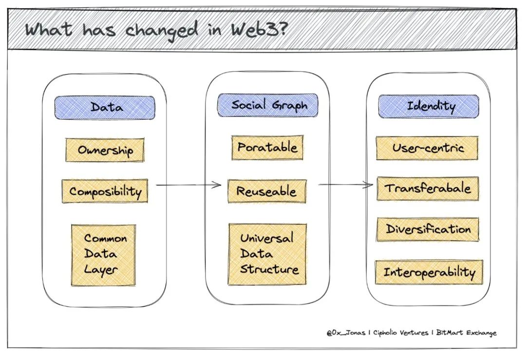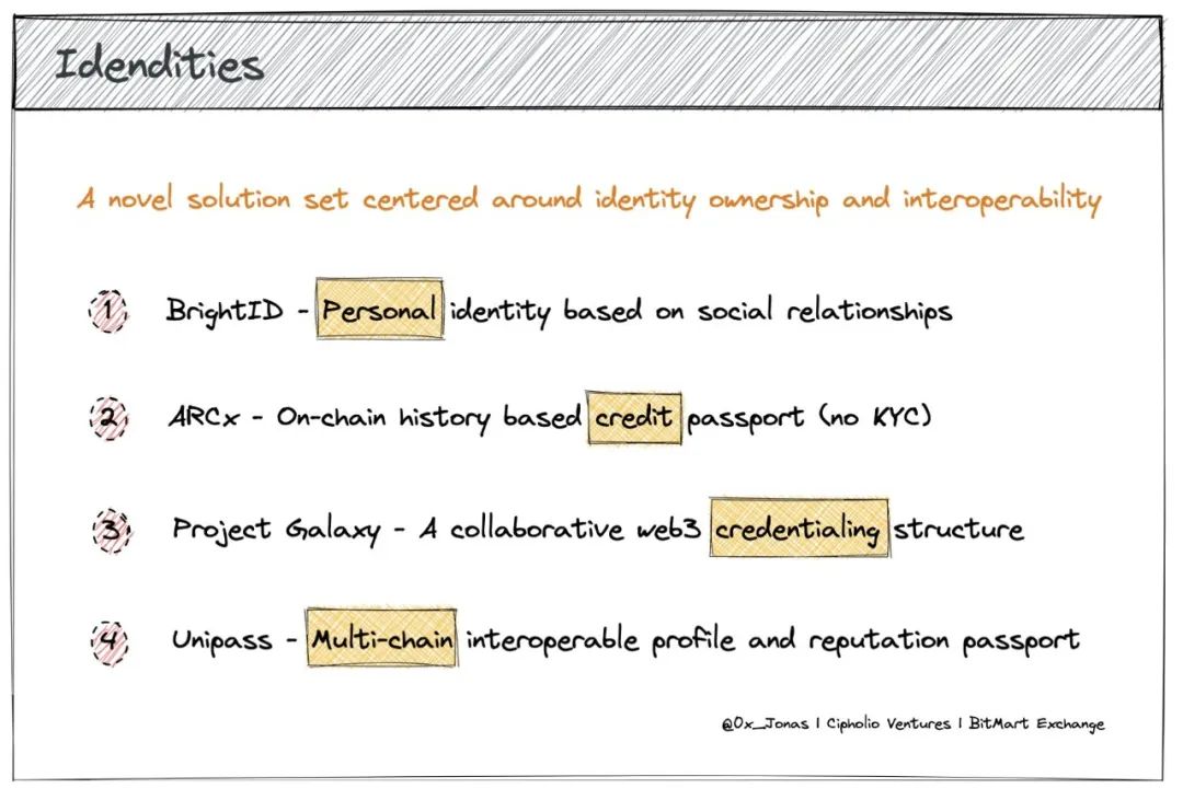 11/14. 随着数据获取基础设施的完善以及社交图谱网络的成熟,随之发展的中间件就是如今百花齐放的 DID。与社交图谱一样身份也不是一个 Web3 原生的概念。Web3 的附加值在于提供了以身份所有权和互操作性为中心的一系列新型解决方案。由于针对身份和主权的定义上有多种维度,仅罗列代表性协议做参考。
