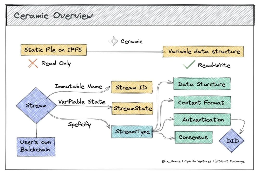 4/14. 数据层面最有价值的创造莫过于@ceramicnetwork。作为对其他构建在 IPFS 上的存储技术的补充,Ceramic 通过其独创的「Stream 」机制实现了动态数据存储的优化,在降低存储时间的同时也大大降低了存储成本。除此以外还还推出了一系列「StreamType」满足开发者对于不同业务场景的使用需求。