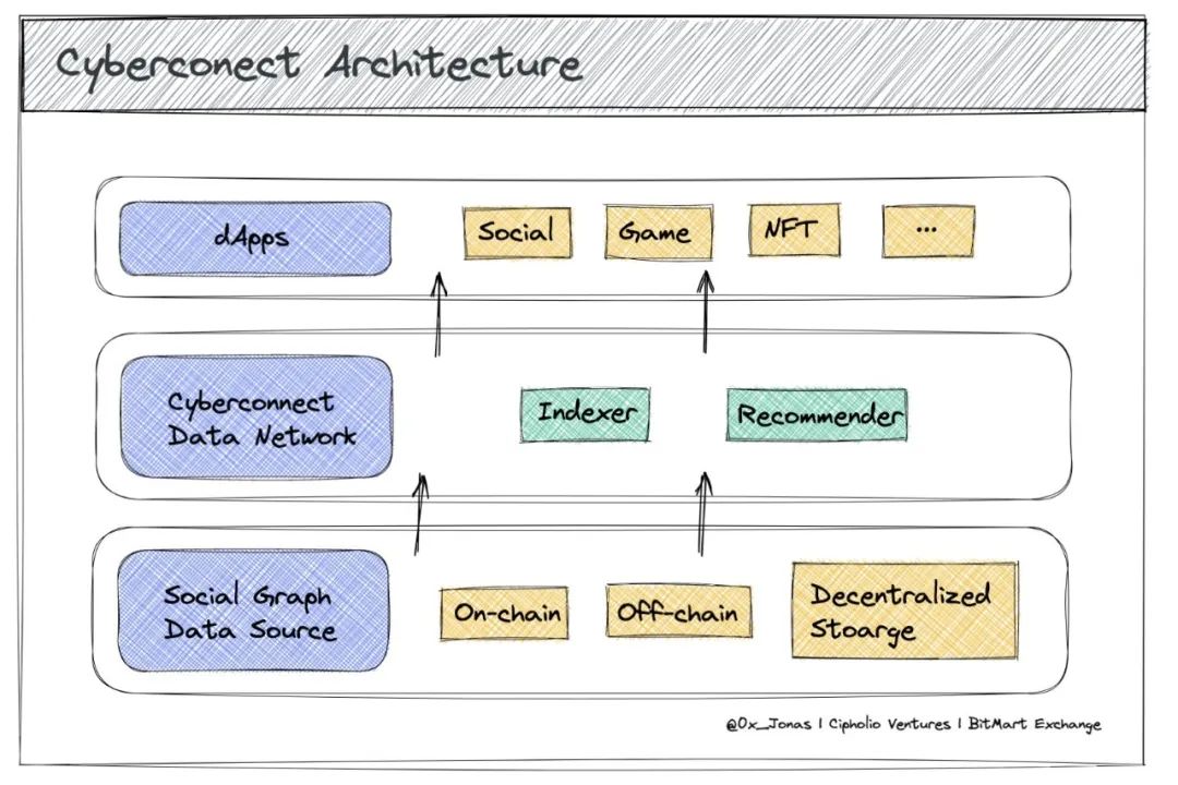 7/14. CyberConnectHQ 作为搭建在 Ceramic 上的社交图谱协议,构建了一个通用账户存储所有个人相关的社交信息网络。其通过整合所有链下、链上以及去中心化存储协议中的数据构建用户特有的社交关系网络,使 Web3 开发者可以专注于建立更好的服务和内容而不必费心搭建用户网络。