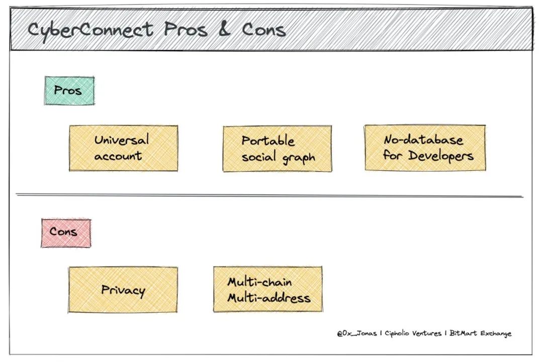 8/14. 毫无疑问通过 CyberConnect 构建的通用账户系统直击 Web2 数据围城的要害,聚合了区块链的网络效应,在开发者和用户之间都形成了正向的价值循环。但其目前仍然面临诸多困境,如没有将数据隐私的选项交还用户,以及如何在不断增长的多链多地址环境中形成精细化组合方案也是个巨大的挑战。