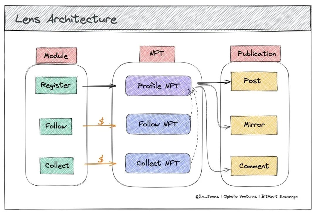 9/14. @LensProtocol完全颠覆了现有的社交图谱设计体系,构建了一套以 NFT 为核心的可拓展社交架构。个人主页,关注用户,收藏将作为信息和价值承载的主体都并以 NFT 的形式记录在钱包中,创作者可以设置时间或金额门槛来捕获用户关注和收集的价值,Lens 架构在 NFT 实用性探索上迈出了坚实的一步。