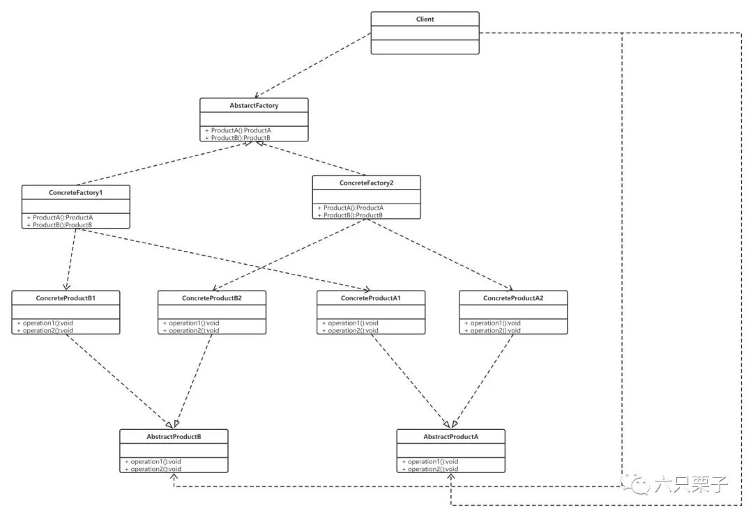 可以看到,抽象工厂实际上就是工厂方法的升级版,它的一个工厂类能够生产多个不同类型的、相关联或者相互依赖的对象。