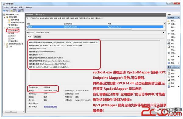 下图给出了一个事件查看器中的一项 RPC 服务启动失败信息: