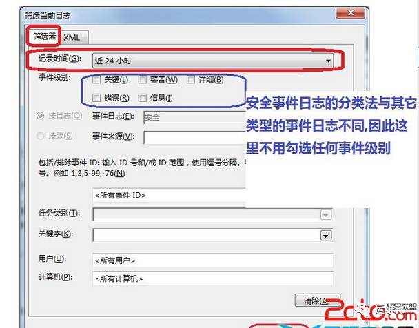 二,在打开的对话框中,切换到"筛选器"标签,在"记录时间(G)"右侧的下拉列表中,选择"近 24 小时",然后点击下方的确定按钮