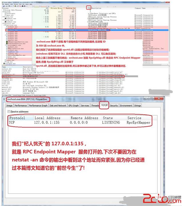 RPC 监听在本地环回(127.0.0.1)地址的 135 端口,出于安全考虑,很多人会将这个端口关闭,以阻止蠕虫病毒与攻击者入侵,但是我们会发现这个地址上的 135 端口始终关不掉而因此忧心忡忡;