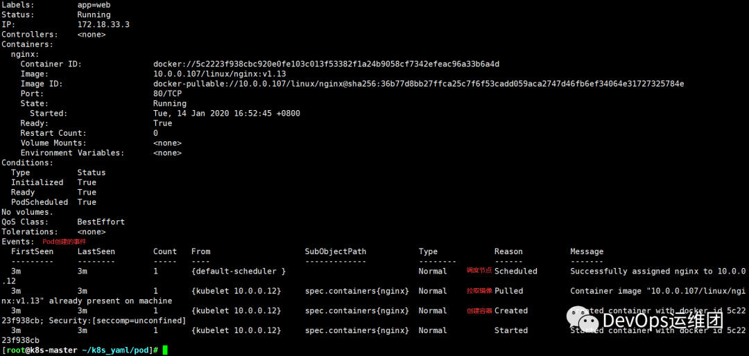 当我们发现某个Pod迟迟无法创建时,我们就可以用kubectl describe pod [Pod名称]