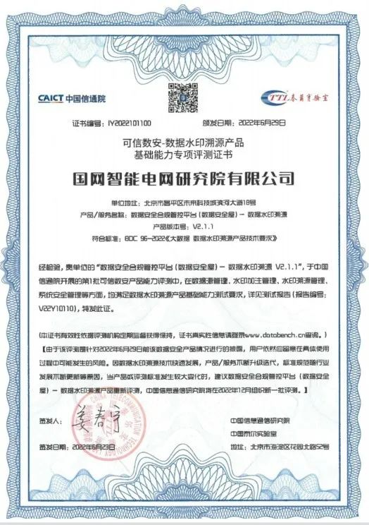 数据分类分级、水印溯源技术成果获中国信通院“可信数安”首批认证