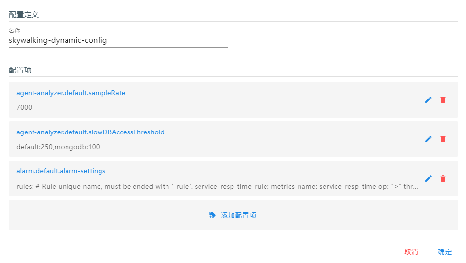 | configuration-discovery.default.agentConfigurations | ConfigurationDiscovery 设置 |