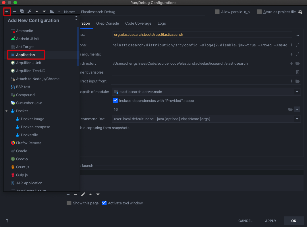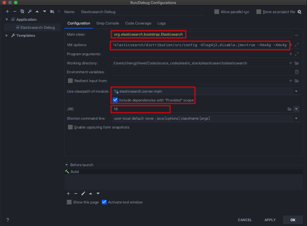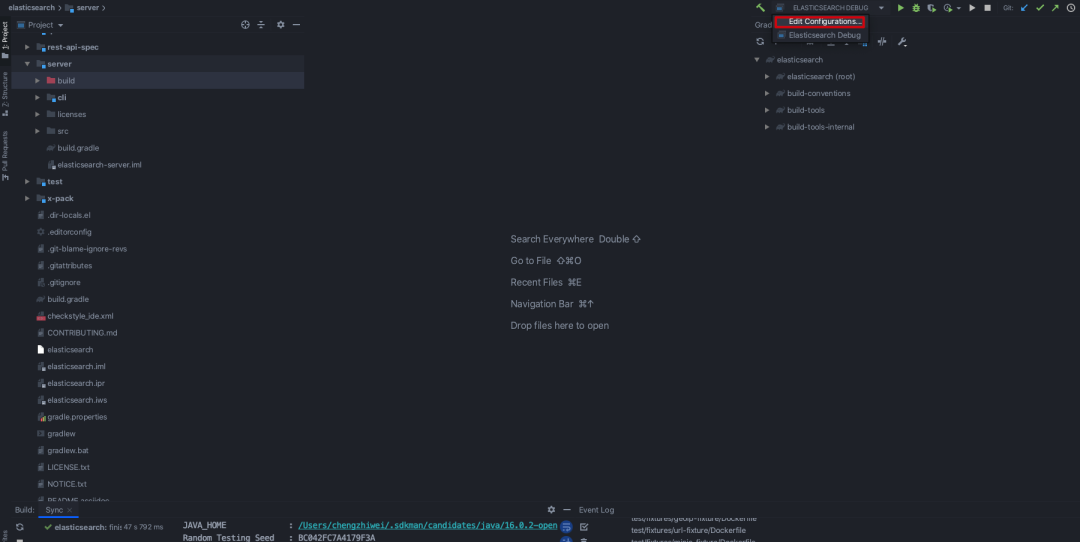 运行 Elasticsearch 需要有包含配置文件的目录,我们可以直接下载一个同版本发行版的 Elasticsearch,然后在 IntelliJ Idea 的 VM options 中指定发行版 Elasticsearch 的目录。