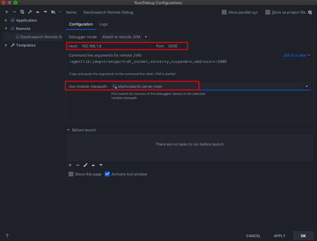 在远程的 Elasticsearch 服务器的 config 目录下的 jvm.options 文件中加入以下配置参数,0:5005 表示在本机所有 IP 地址监听 5005 端口。