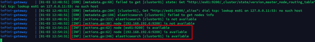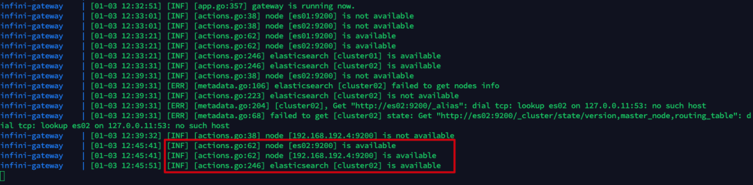 查看网关日志可以看到集群 cluster01 恢复的信息。