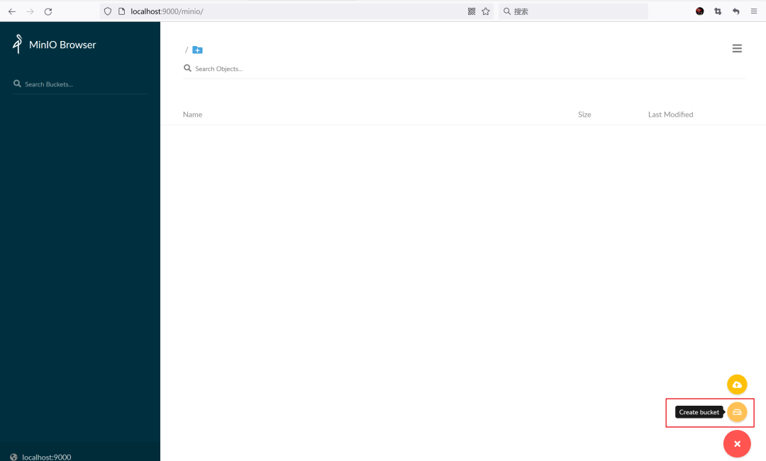 浏览器输入 http://localhost:9000 访问 MinIO 界面。用户名:admin,密码 admin123456,是我们前面用 helm install 安装 minio 时设置的。